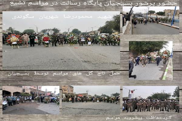 موضوع : حضور باشکوه بسیجیان مسجدامام حسن عسگری(ع) پایگاه رسالت در مراسم تشیع شهیدوالا مقام محمودرضا شهریان سگوندی