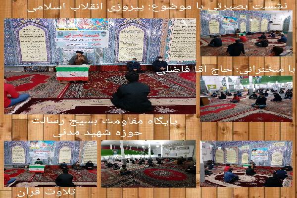 به گزارش خبرنگار خبرگزاری مسجد نیوز نشست خبری با سخنرانی حاج آقا فاضلی رئیس قرارگاه امام صادق علیه السلام در اندیمشک در مسجد امام حسن عسکری علیه السلام با موضوع پیروزی انقلاب اسلامی و به همراه تلاوت قرآن کریم برگزار شد.