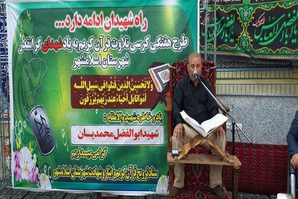 در این محفل قرآنی که با حضور مسئولان شهرستان اسلامشهر اعم از فرمانده کلانتری ۱۱۵ امامزاده عقیل(ع)، قائممقام شورای فرهنگی، معاون بنیاد شهید و امور ایثارگران و ... برگزار شد، سید محمد کرمانی، قاری بینالمللی قرآن کریم به تلاوت آیاتی چند از کلامالله مجید پرداخت که با استقبال فراوان حضار روبرو شد. همچنین، در این مراسم، رستم فرشاد، یکی از قاریان شهرستان اسلامشهر نیز آیاتی از قرآن کریم را تلاوت کرد.