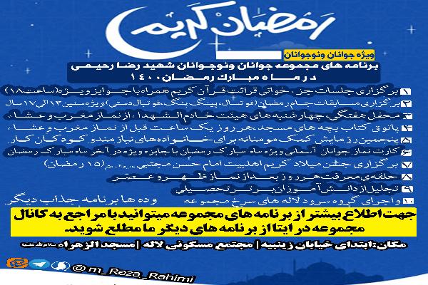 برنامه مجموعه جوانان شهید رضا رحیمی در ماه مبارک رمضان برای نوجوانان و جوانان