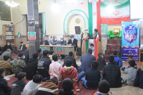 در این مراسم علاوه بر برگزاری مسابقه و سخنرانی حجت الاسلام "براتیان" مسئول فرهنگی آستان مقدس امامزاده سید عباس بن موسی بن جعفر (علیه السلام) بجنورد، که در این مراسم به تلاش های دشمنان در خدشه دار کردن چهره نظام اسلامی ایران و دستاوردهای انقلاب اسلامی اشاره کرد و گفت حواسمان باشد هر چقدر درگیر خودمان باشیم ظهور دیرتر اتفاق می افتد، میز خدمت و پاسخگویی به مردم این محله که از محلات حاشیه و کم برخوردار شهر بجنورد است، محور برنامه بود.