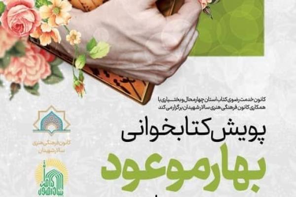 طبق گزارشی از پایگاه خبری مسجد نیوز«احسان طاهری» اظهار داشت: پویش کتابخوانی «بهار موعود» به همت کانون خدمت رضوی کتاب چهارمحال و بختیاری و با همکاری کانون فرهنگی هنری سالار شهیدان شهرکرد در سطح کانون های مساجد استان برگزار می شود.