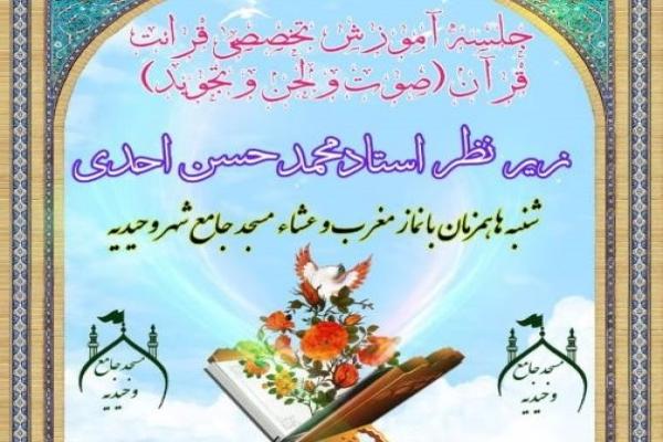 سلسله جلسات آموزش تخصصی قرائت قرآن کریم در مسجد جامع وحیدیه برگزار میشود.