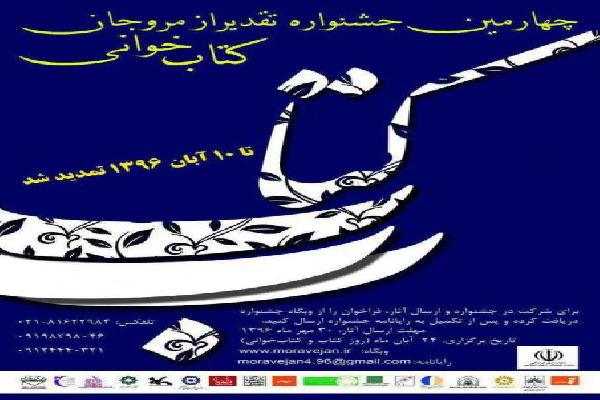 چهارمین دورۀ جشنواره تقدیر از مروجان کتابخوانی توسط شبکه گروه های ترویج کتابخوانی و حمایت معاونت فرهنگی وزارت فرهنگ و ارشاد اسلامی و با همکاری کانون های فرهنگی هنری مساجد ، 24 آبان ماه با معرفی برگزیدگان به کار خود پایان خواهد داد.