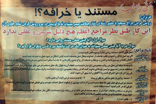 فرمانده پایگاه بسیج مسجد المهدی (عج) با بیان اینکه اطلاعرسانی درباره پدیده خرافی شب اول ربیعالاول، قبلا نیز از سوی دستاندرکاران این خانه خدا انجام شده است، خاطرنشان کرد: سالهای گذشته امام جماعت این مسجد در سخنرانیهای خود، در این مورد روشنگری میکردند اما باز هم شاهد وقوع این پدیده پیرامون مسجد المهدی (عج) بودیم ولی امسال با نصب بنر و پوستر، دیگر شاهد چنین پدیده خرافی نبودیم.