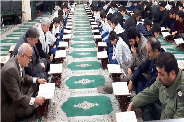 محفل انس با قرآن با حضور 150 دانش آموز بسیجی و قرآنی در مسجد فاطمیه