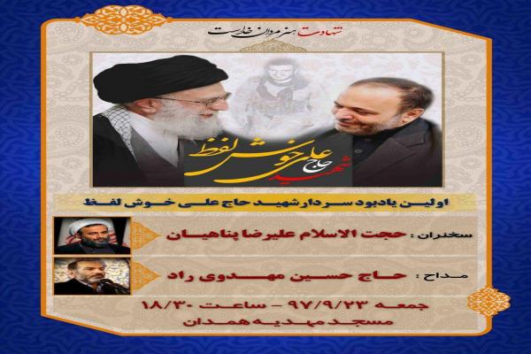 اولین سالگرد شهادت جانباز هشت سال دفاع مقدس شهید «علی خوش لفظ» جمعه ( ۲۳ آذر)در مسجد مهدیه همدان برگزار میشود.