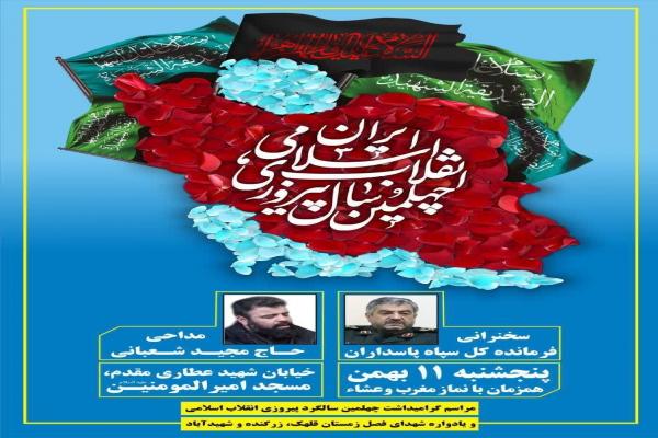 مراسم بزرگداشت چهلمین سال پیروزی انقلاب اسلامی با سخنرانی سرلشکر جعفری در مسجد امیرالمومنین (ع) قلهک برگزار میشود.